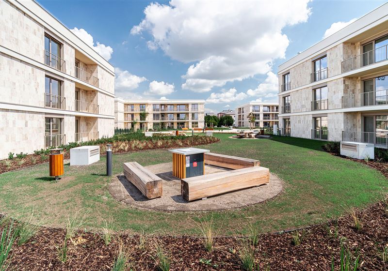 Vnitroblok areálu je koncipovaný tak, abyste mohli co nejvíce času trávit venku. Relaxovat a setkávat se s přáteli.